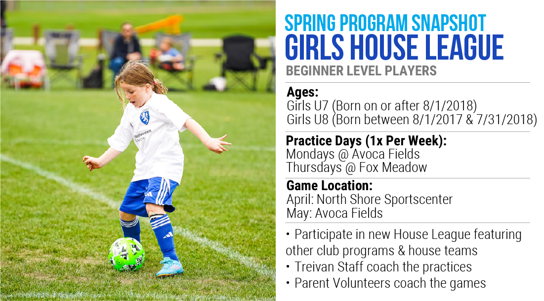 Northfield, Winnetka, Wilmette & Surrounding Areas! Join our new House League, featuring friendly competition with other local neighborhood programs. Players will train once a week with Trevian coaching staff and compete in 5v5 games with goalkeepers each Saturday.